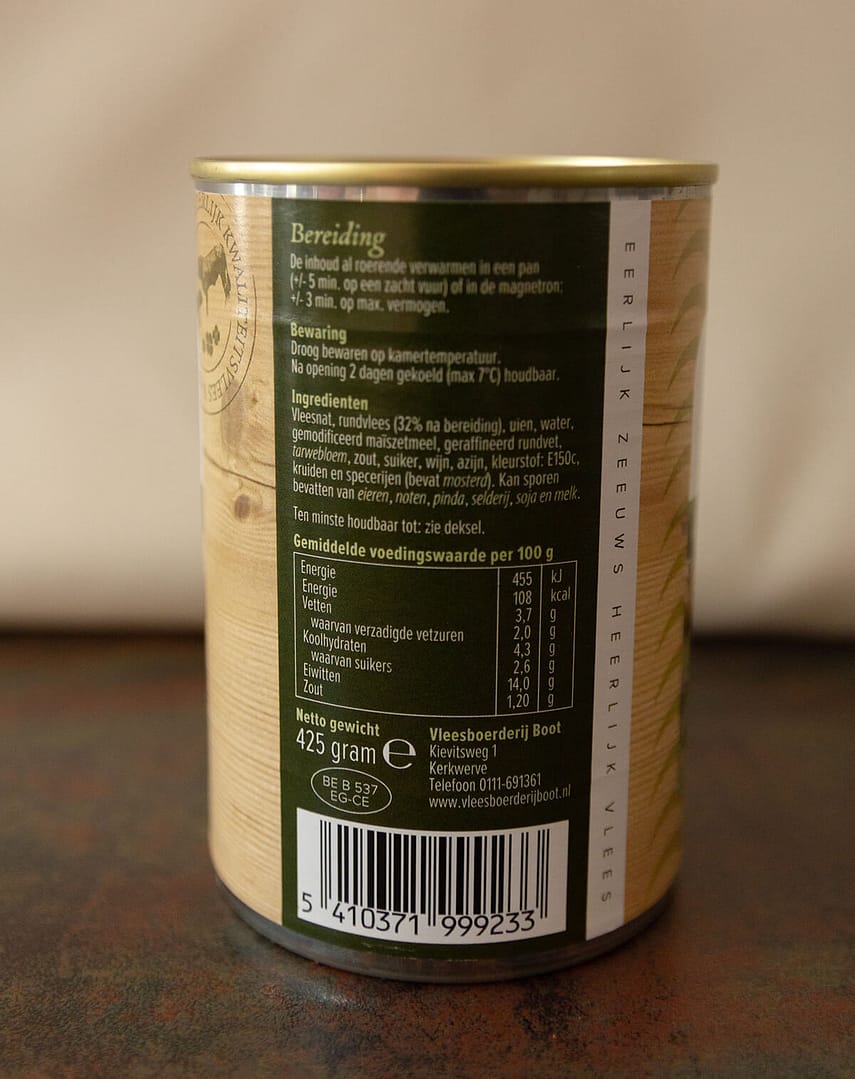 Het Zeeuws stoofvlees is van Vleesboerderij Boot. Zij verkopen eerlijk vlees van Zeeuwse bodem.